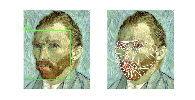 如果我們要將某個人臉貼到目標的臉型上,透過 face alignment 的 landmarks 知道了點的位置之後再做一下位置驅動的變形,臉就能成功貼到目標物體上了。在進行 alignment 前,需要先取得 facial landmarks 才能進行校準,目前最常用的 facial landmark model 則是 Dlib 所提供的 68 點模型。