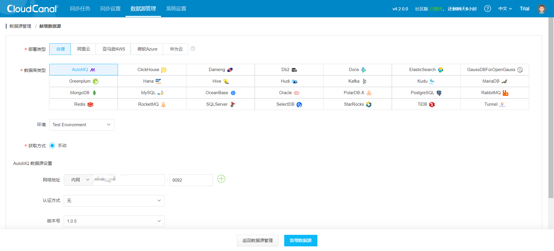 Kafka Node: A deployed and running Kafka node. Ensure the Kafka node can normally receive and process messages, and that the Kafka node's network configuration allows communication with the CloudCanal service.