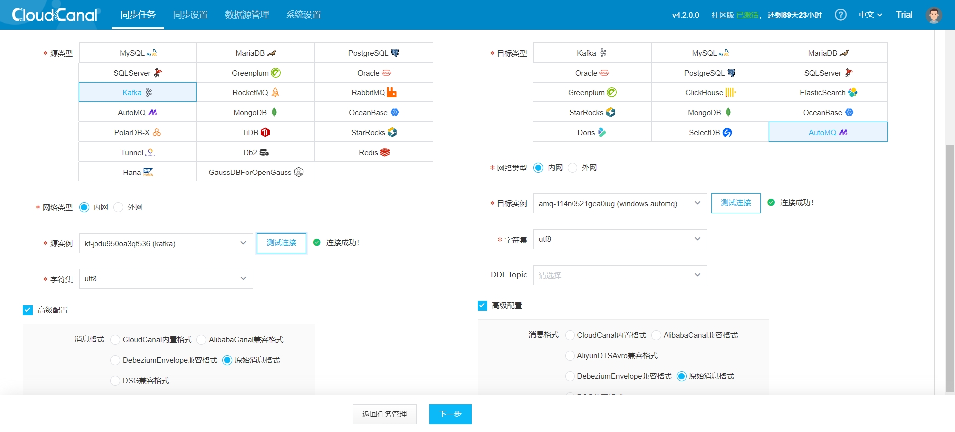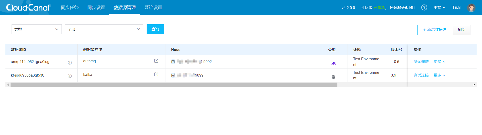 Similarly, add a Kafka data source and perform connection tests on both nodes. The results are as follows: