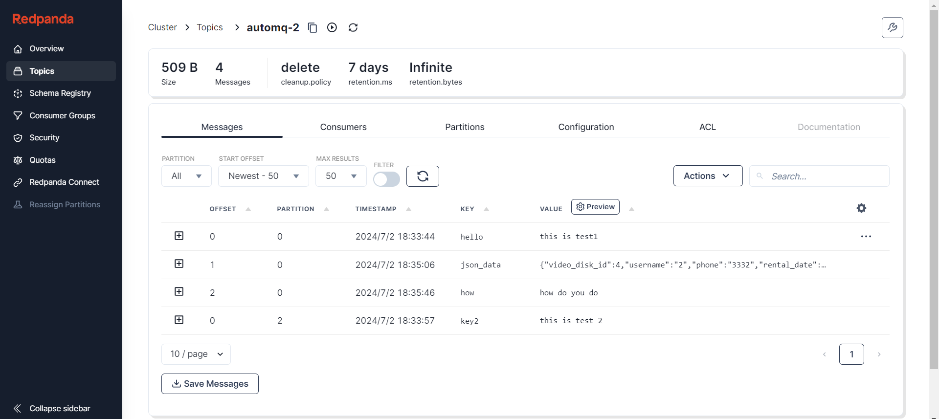 Additionally, Redpanda Console supports users in manually creating and publishing messages, which is particularly valuable for testing or injecting messages in specific scenarios.