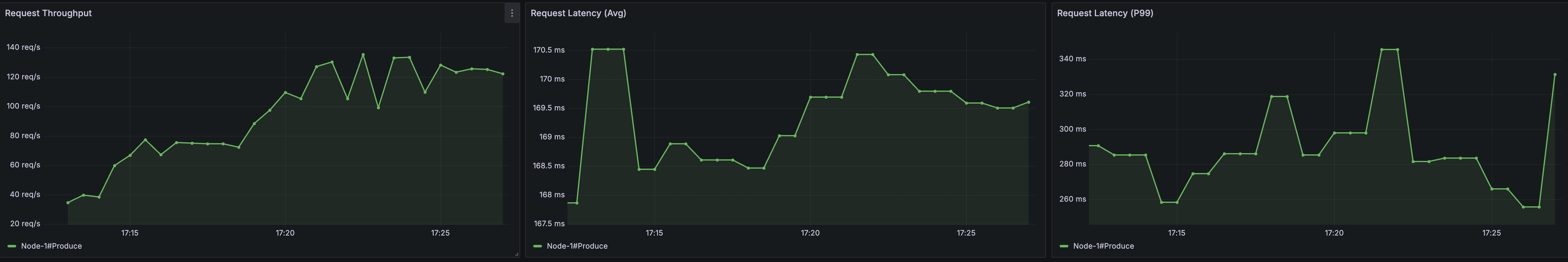AutoMQ has made numerous optimizations to the performance of S3 WAL, particularly its latency performance. In our test scenarios, the average latency for S3 WAL Append is 168ms, with P99 at 296ms.