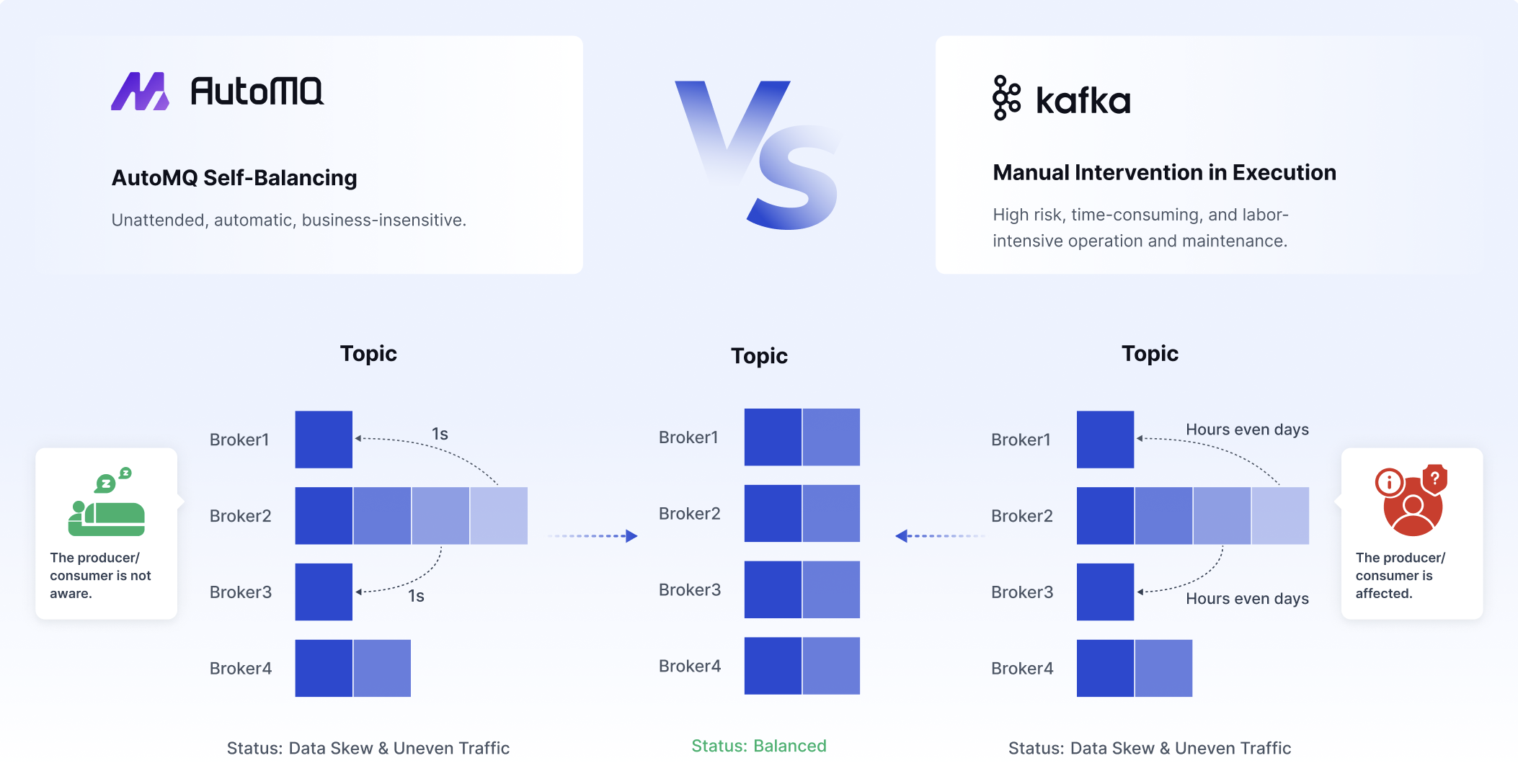 AutoMQ is a next-generation Kafka that is 100% fully compatible and built on top of S3. AutoMQ also uses the concept of brokers. The key difference from Kafka is that AutoMQ doesn't rely on ISR multiple replicas for data durability—instead, it uses cloud storage to ensure data persistence. This means AutoMQ brokers don't need to maintain multiple replicas internally like Apache Kafka does. Based on this cloud-first design philosophy, AutoMQ introduces innovative features such as second-level partition migration, rapid auto-elasticity, and continuous rebalancing. If you're interested in learning more, please check out this article: