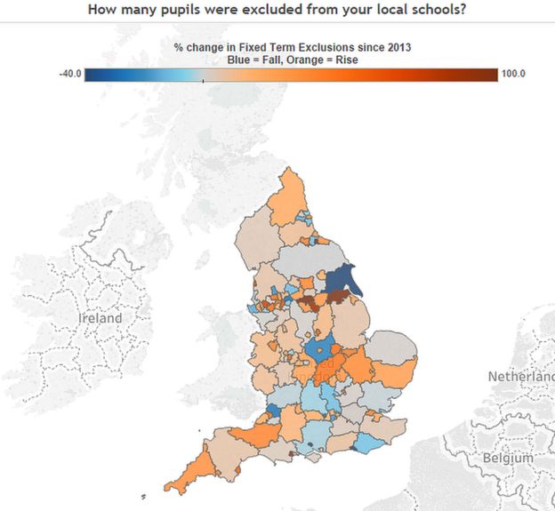 In October 2016 Laurence Cawley and Daniel Wainwright reported that the number of pupils expelled from schools in some parts of England had risen by more than 300% in three years.