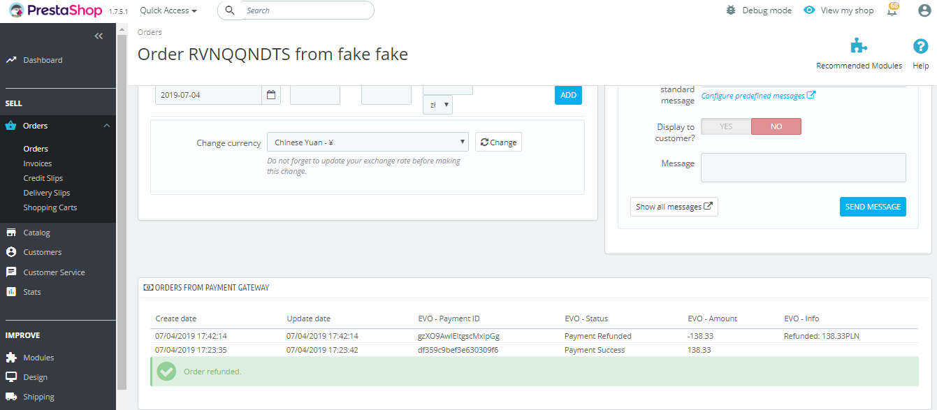 - You will see the green ‘Order refunded’ message. This can be verified in the merchant's back office tool as well.