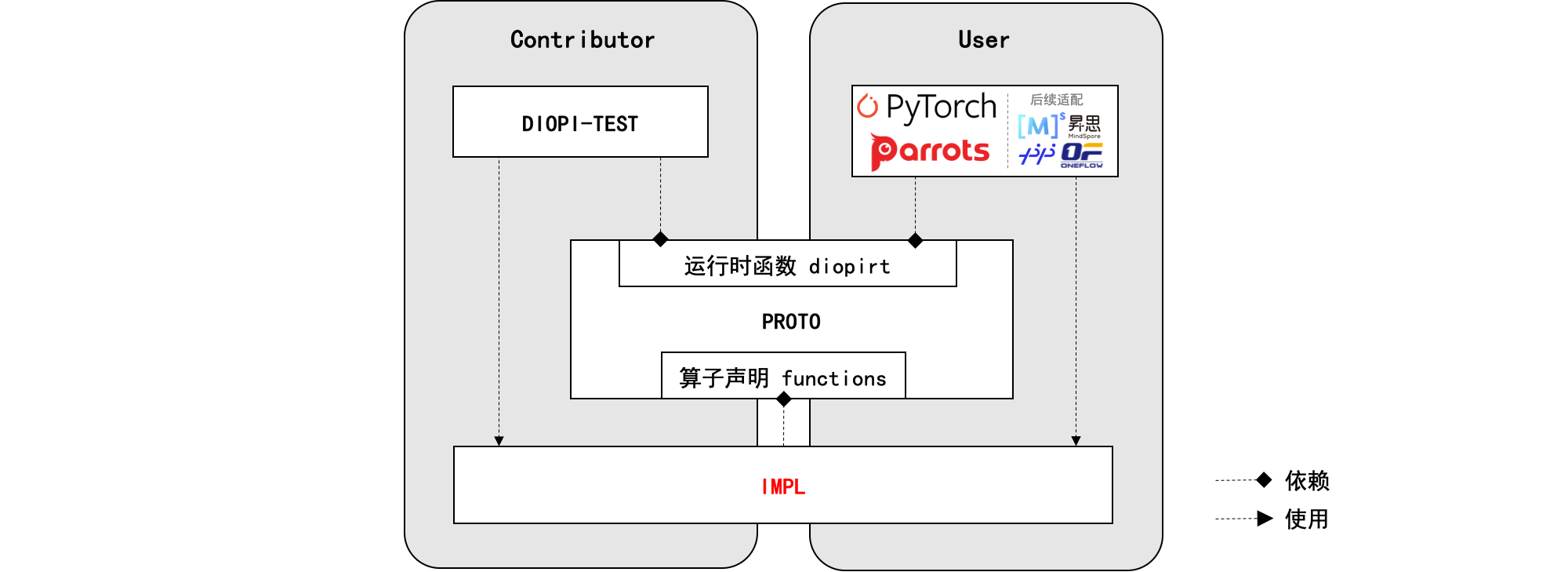 proto/include/diopi/diopirt.h提供的接口实现proto/include/diopi/functions.h声明的标准算子, 并编译为libdiopi_impl.so动态库。 - diopi_test:用于保证算子功能正确性。实现