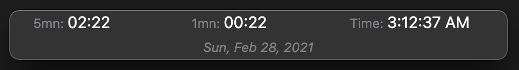 As a technical trader, I wanted to have a easy and clear view of how minutes and seconds there is left to the next 5 minute and 1 minute candle.
