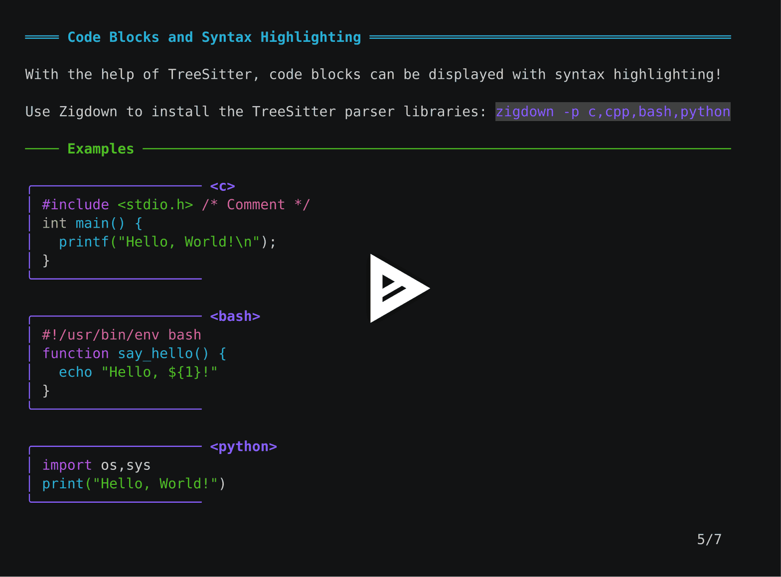 zigdown format {file} - In-Terminal Slide Shows: