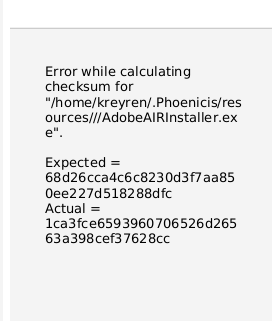 Checksum changed for adobeair. -> Blocked by https://github.com/PhoenicisOrg/scripts/issues/1012 -> -> Created #1060 |