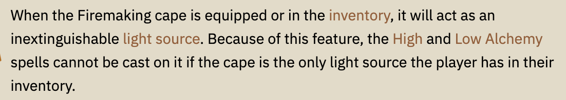 But it's a light source. It literally functions as something that lights up caves: https://oldschool.runescape.wiki/w/Firemaking_cape |
