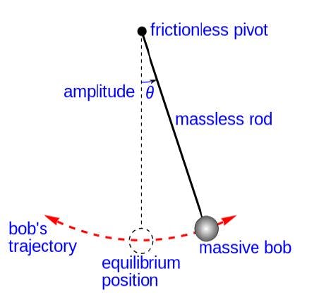 The simple gravity pendulum is an idealized mathematical model of a pendulum. This is a weight (or bob) on the end of a massless cord suspended from a pivot, without friction. When given an initial push, it will swing back and forth at a constant amplitude. Real pendulums are subject to friction and air drag, so the amplitude of their swings declines.