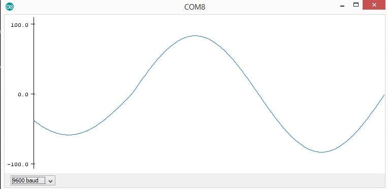 Using the Serial.println()function the value of ‘g’ is printed and a real time damping curve is drawn in the serial plotter.