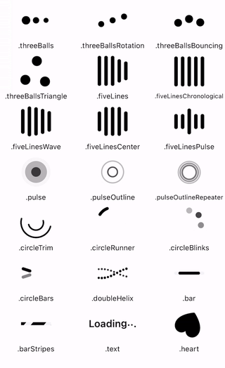 A collection of lightweight loading animations that can be applied to any SwiftUI view with 1 line of code. All animations are built using the SwiftUI framework (and in a few cases, the Combine framework).