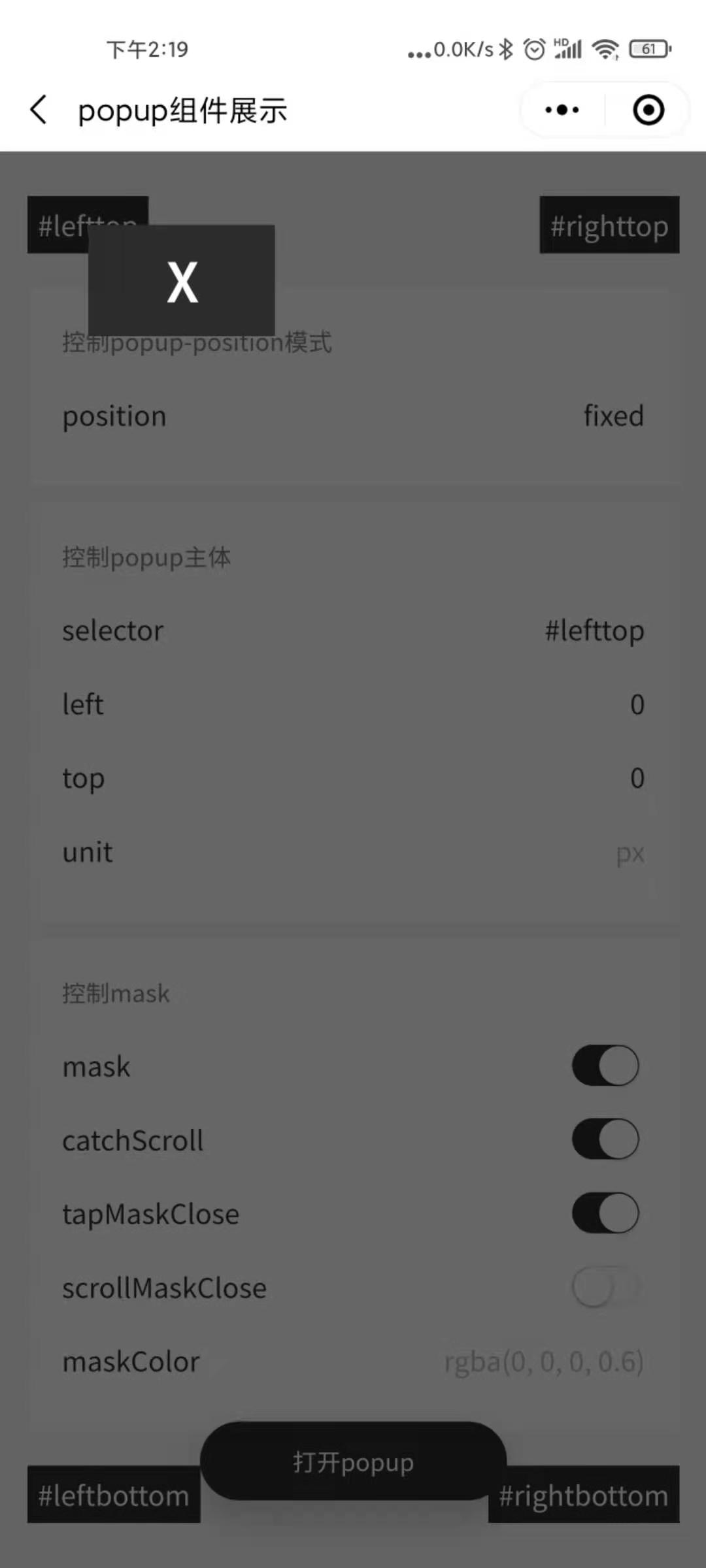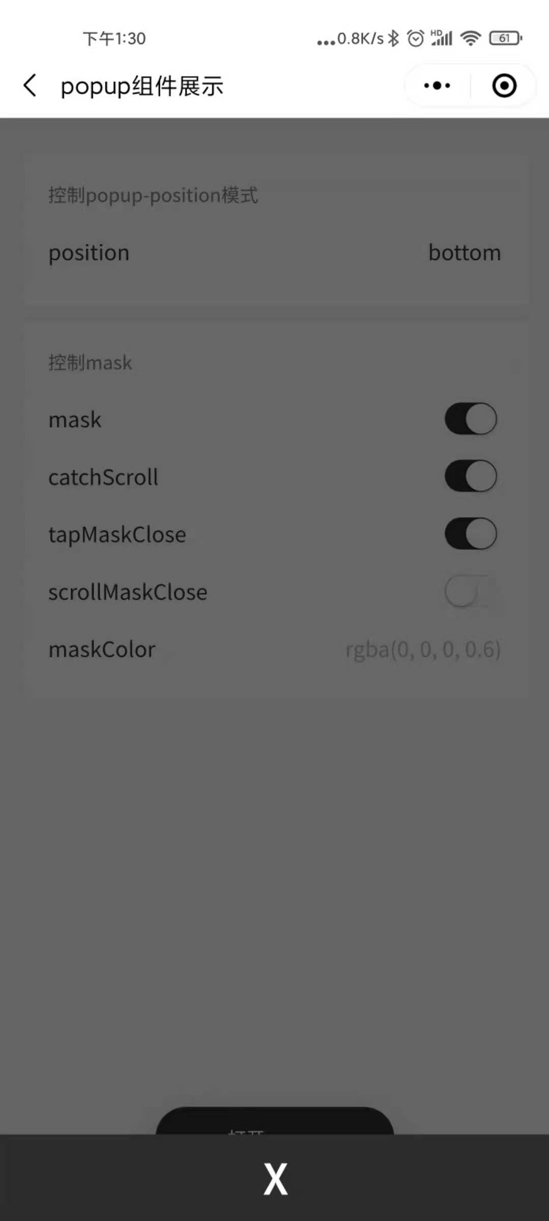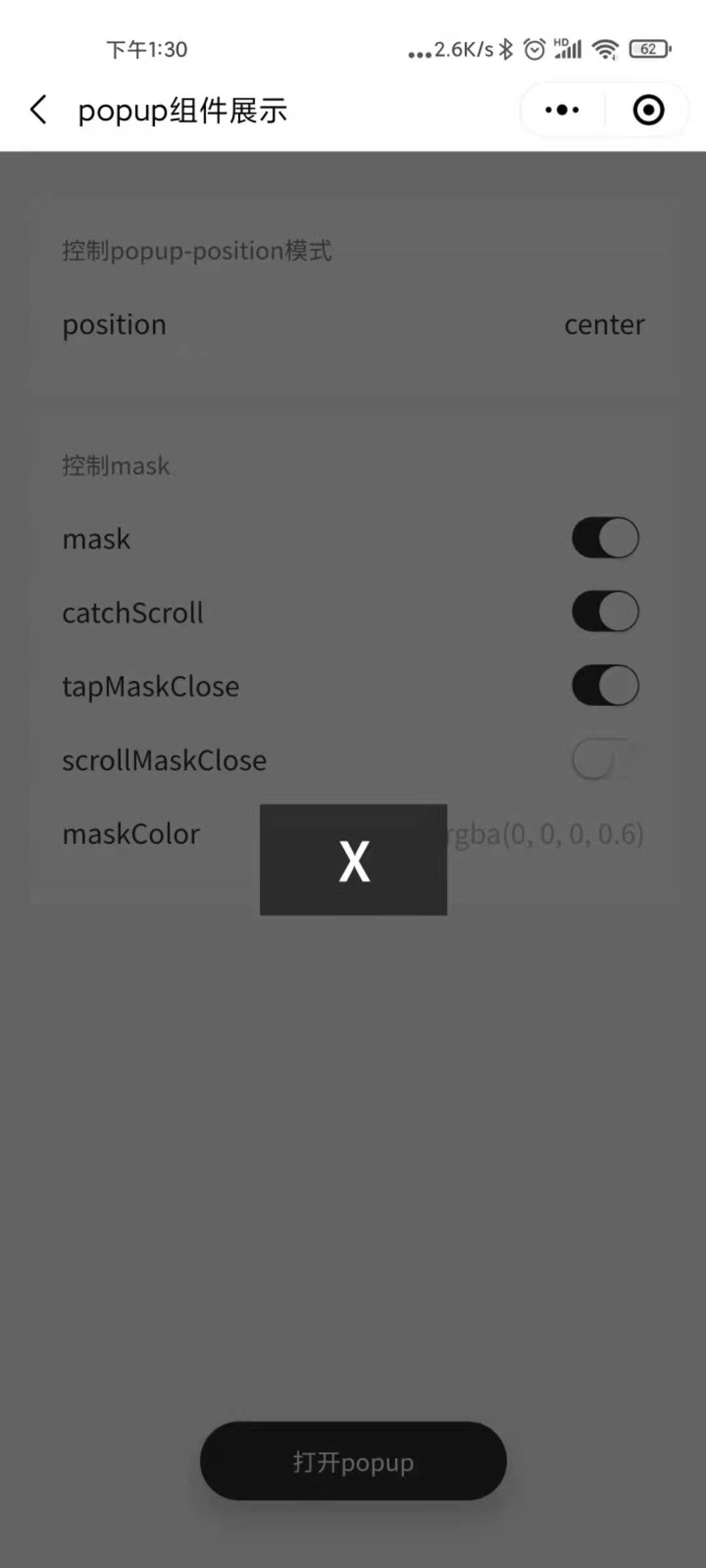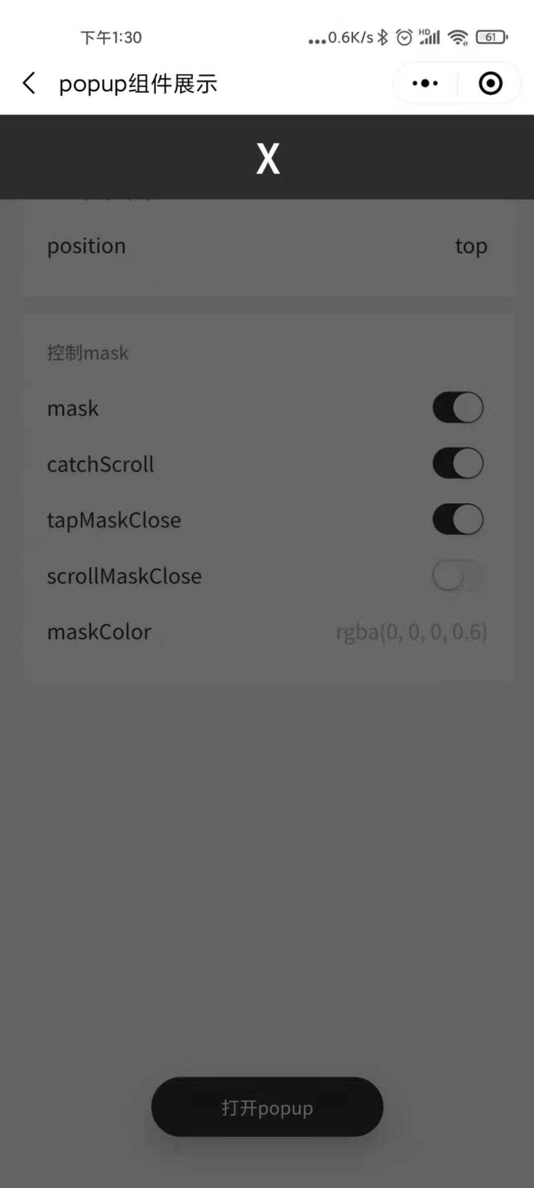 tapMaskClose | Boolean | true | 点击 mask 是否关闭 popup,先决条件是 mask=true |
