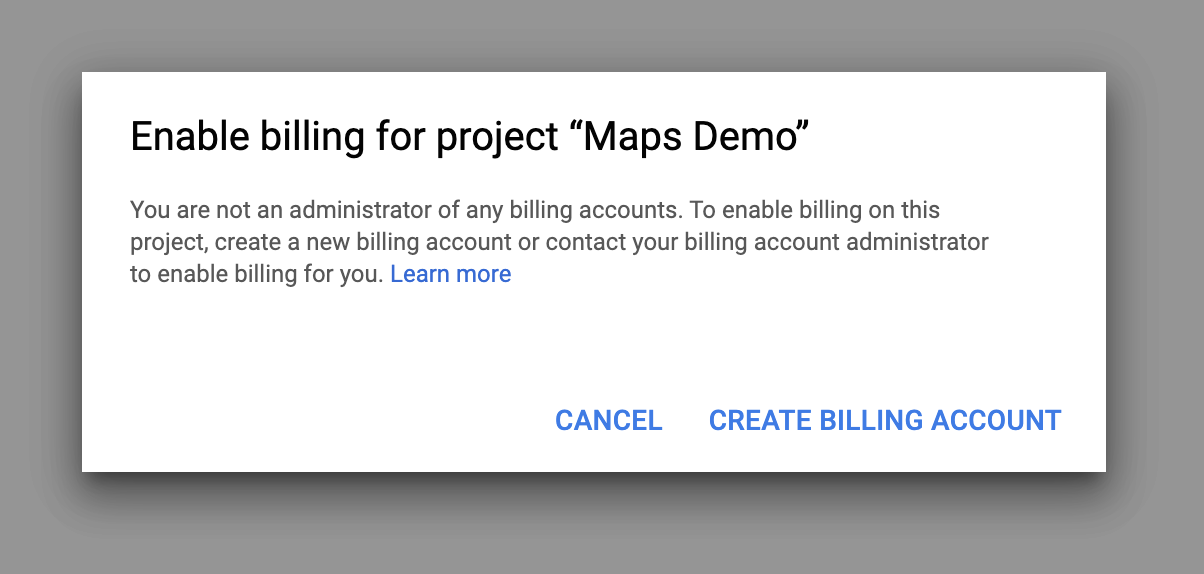 In the next step, you'll have to go through the steps to enable billing for your project (but you won't get charged for using this API). This requires entering your credit card information: