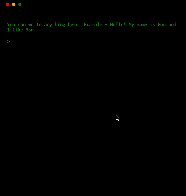 msg='You can write anything here. Example - Hello! My name is Foo and I like Bar.'