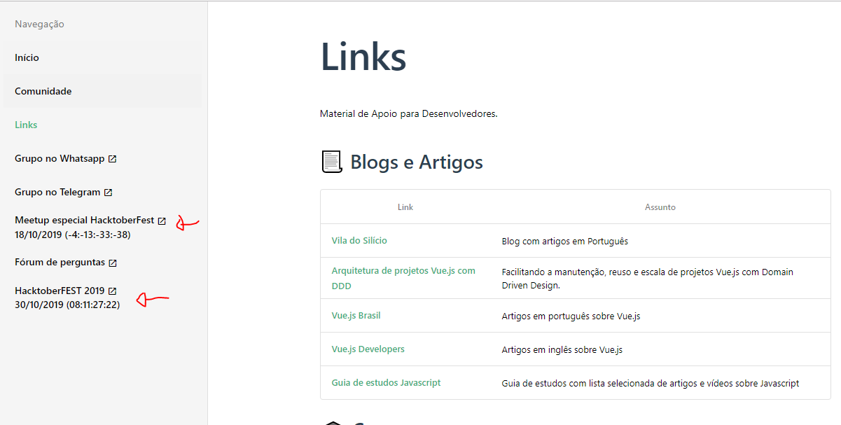 Além disso, seria interessante um menu apenas de "próximos eventos" para na página contenha o banner e descrição dos próximos eventos, assim como o link. (a contagem achei sensacional!)