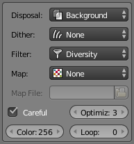 You can adjust the settings to fine-tune the quality of your animated GIF (and it's filesize). For most situations, the default settings should give good results. You can learn more about each of the settings by hovering your mouse over them or by reading the Gifsicle Manpage