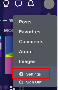 Apos realizar login em sua conta, selecione Settings (na imagem do canto superior direito), conforme a imagem a seguir.