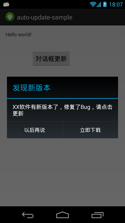 该library项目实现了软件版本检查,apk文件下载,软件安装(Android app update checker,download and install apk)支持API 8+