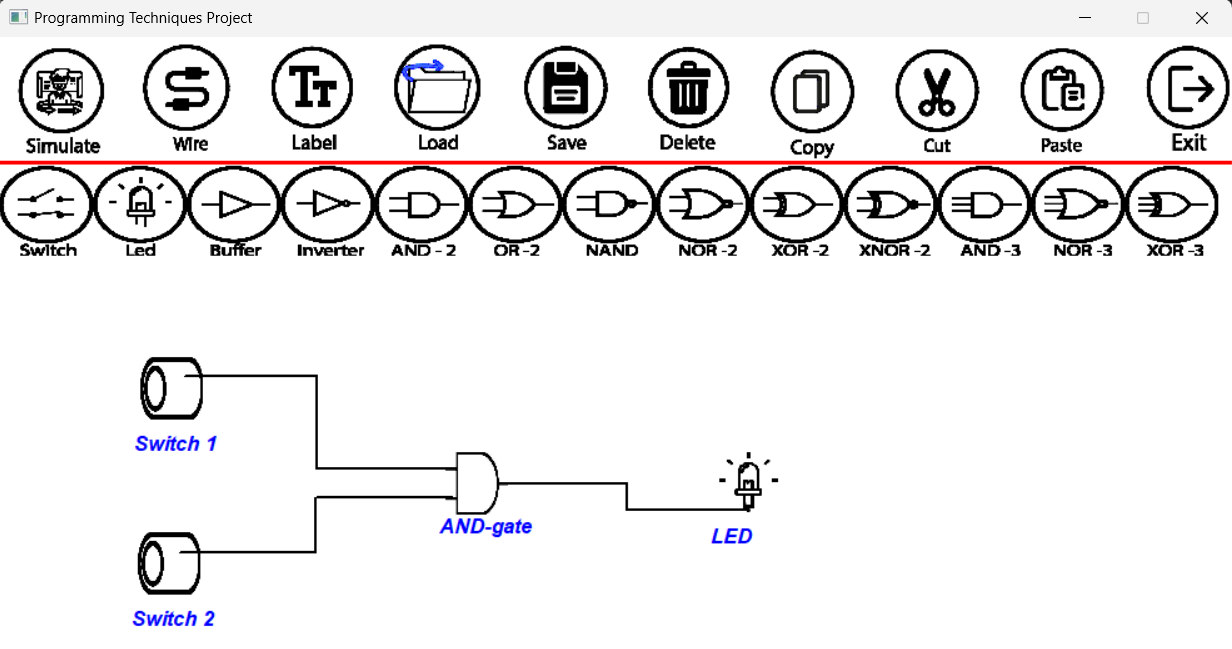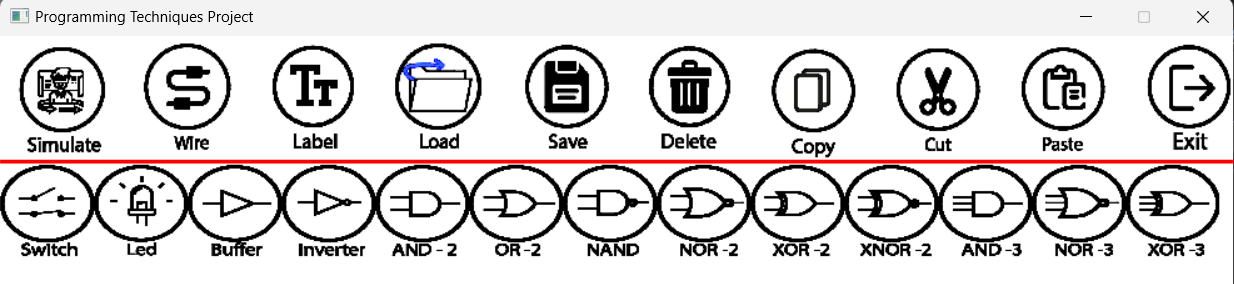 This application allows user to design and simulate digital circuits; to see its output and behaviour. Simulator provides a graphical user interface (GUI) with tools for drawing circuit diagrams, simulating logic functions, and analyzing the behavior of the circuit. This was the project of the first programming course in Cairo University, Computer Engineering Department.