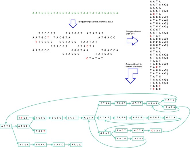 Genome-Assembly using De-Bruijn graph from Error-Prone Reads.: