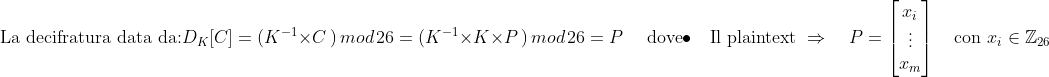 L’attaccante dunque riesce ad ottenere la chiave K solo se la matrice P* è invertibile modulo 26.