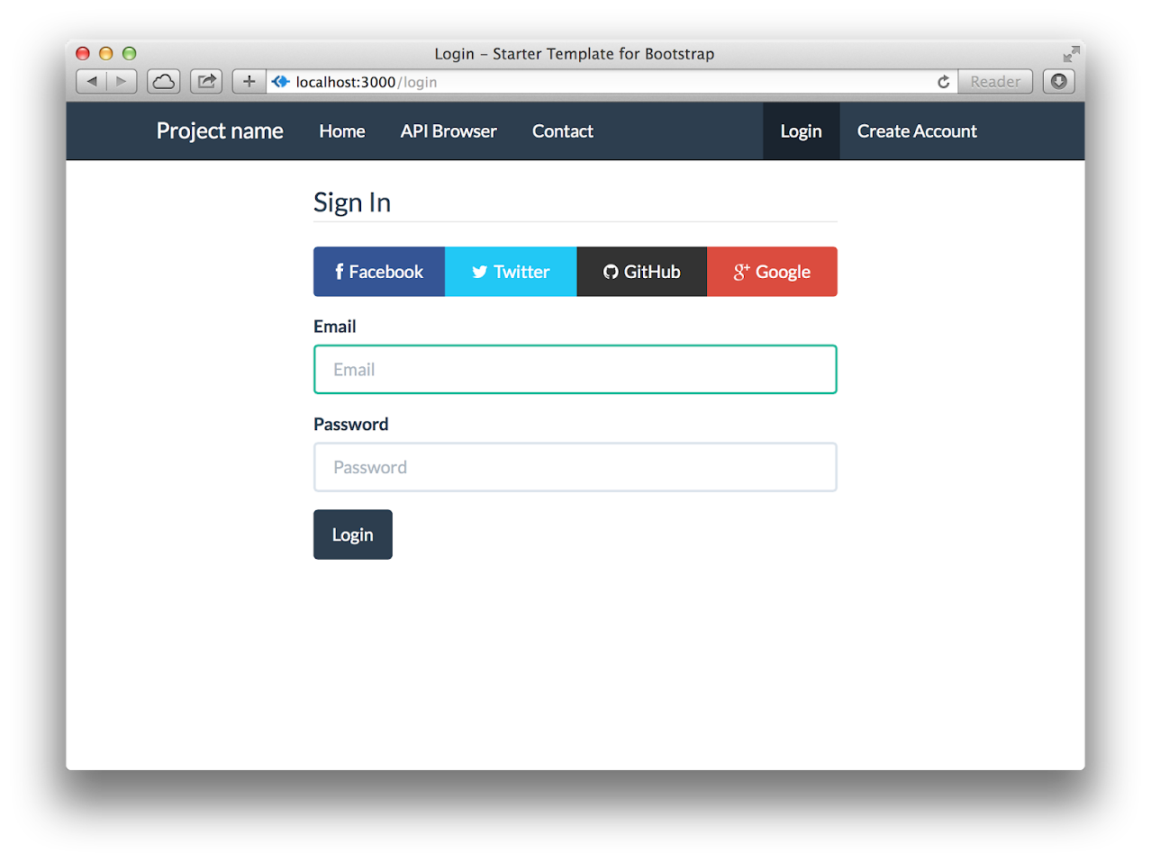 . By doing so, Google, Twitter and Github buttons will not show up on the Login page. If you set localAuth: false