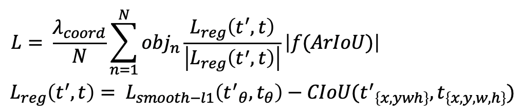 As the paper suggested, I get a better results from **f(ariou) = exp(1-ariou)-1**. Therefore I used it for my loss function.