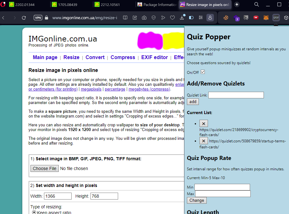 Extension to create popup quizzes pulling from your choice of quizlet links at random intervals. Created to help you keep seeing relevant study material throughout your day.